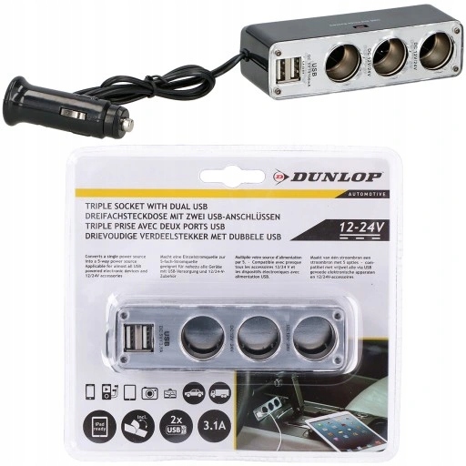 DUNLOP ROZGAŁĘŹNIK ROZDZIELACZ zapalniczki +2x USB