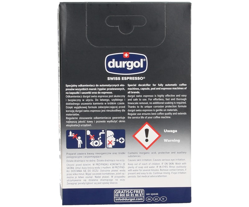 Durgol® Swiss Espresso® — специальное средство для удаления накипи, предназначенное для эспрессо- и капельных кофемашин всех марок