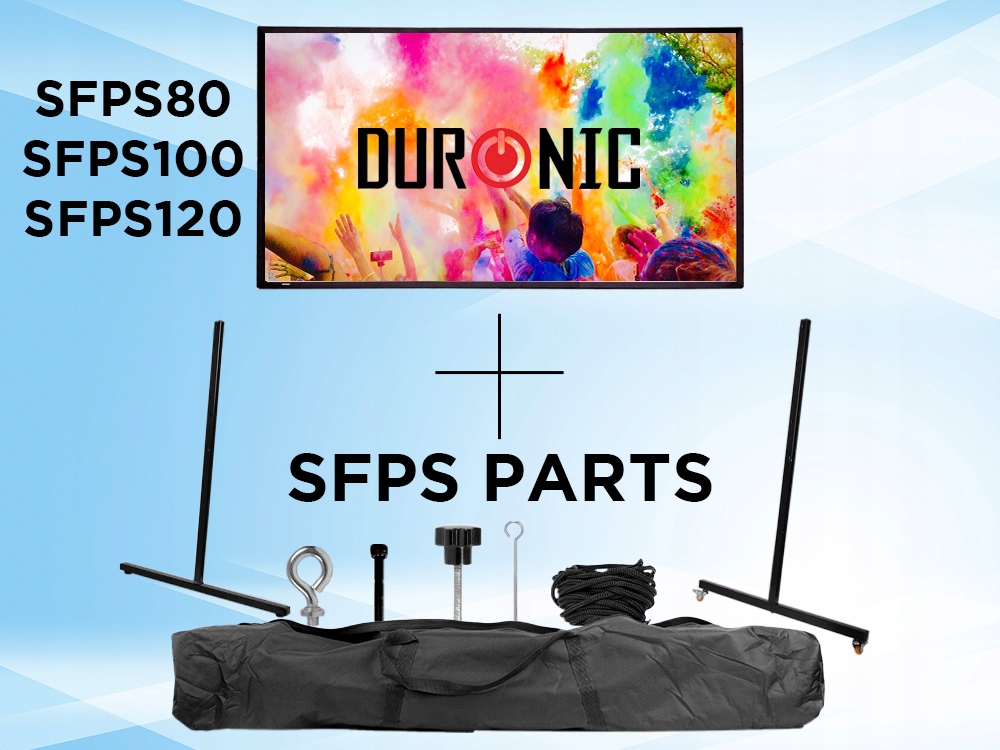 Duronic BD-SFPS100 — это готовый комплект, содержащий проекционный экран SFPS100 и мобильный штатив SFPS Parts, идеальное решение для дома, офиса и использования на открытом воздухе. Модульная система деталей SFPS обеспечивает быструю сборку без инструментов. Экран с соотношением сторон 16:9 идеально подходит для форматов Full HD, 4K и 8K и подходит для установки в помещении и на улице.