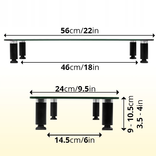 Поскольку подставка изготовлена из прочного стекла, она выдерживает максимальную нагрузку 20 кг. Мы считаем, что этого достаточно для большинства мониторов и ноутбуков... и даже цветочных горшков.