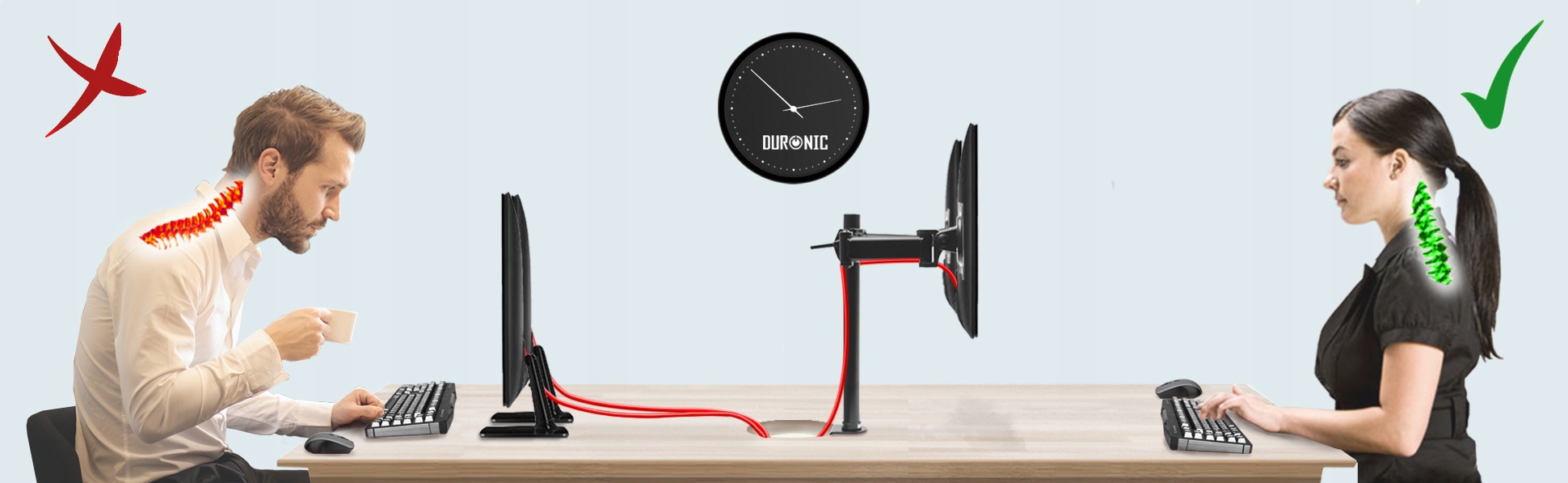 - Duronic DM252 — держатель, предназначенный для крепления 2-х мониторов или телевизоров, крепится с помощью зажима и кронштейна (входит в комплект). Это позволяет повысить эргономику работы – больше места на столе и лучший угол обзора (без необходимости разборки). Благодаря зажиму и кронштейну можно регулировать высоту и угол наклона экранов/телевизоров. Система сборки идеальна для художников-графиков, дизайнеров и геймеров, а также для повседневной офисной работы.