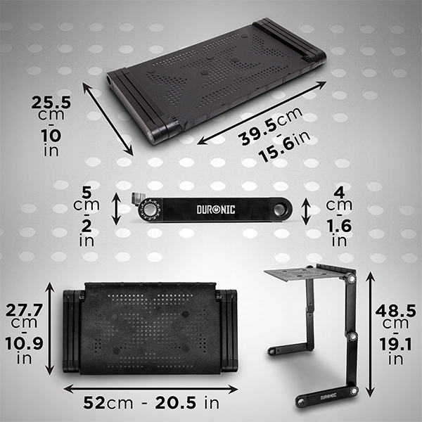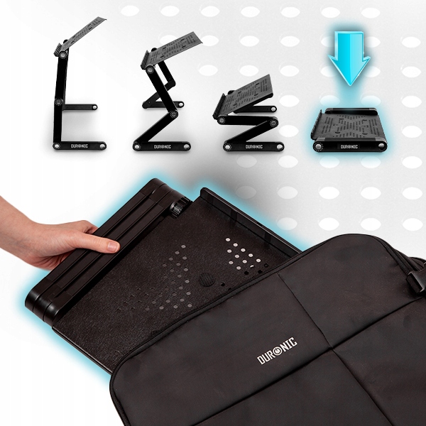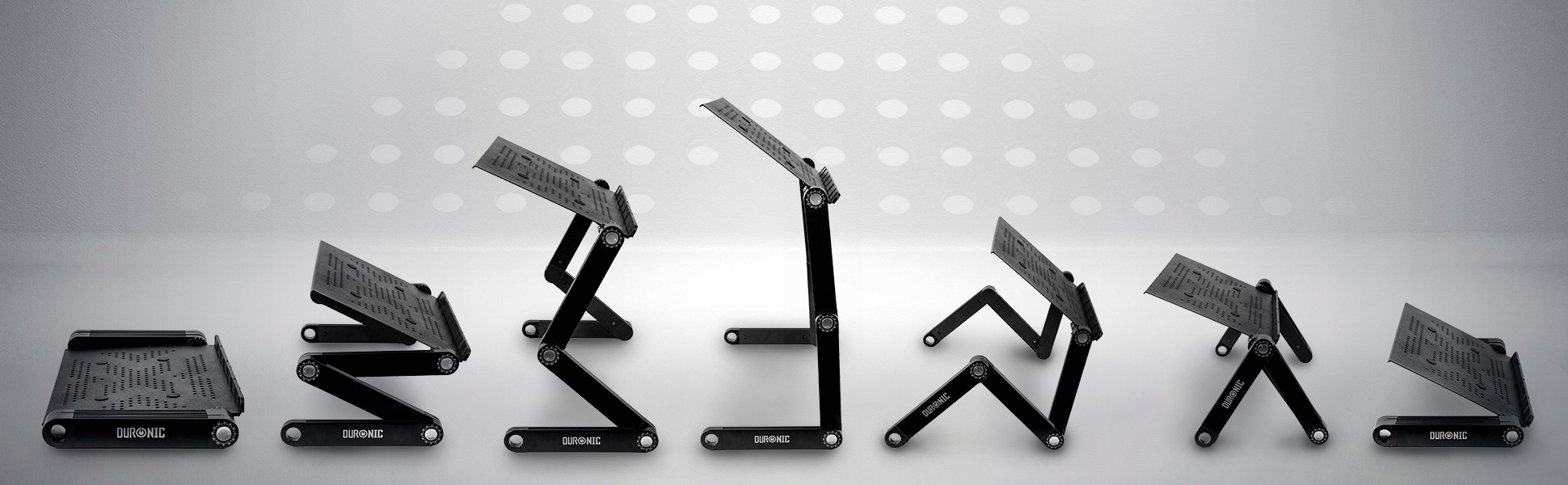- Duronic DML121 — это подставка, которую можно легко настроить в оптимальное положение. Благодаря трем вращающимся винтам (каждый может совершать полный оборот на 360°) их можно устанавливать независимо друг от друга. Подставку можно использовать не только для ноутбука, но и для планшета, книги или для облегчения хранения рецептов.
