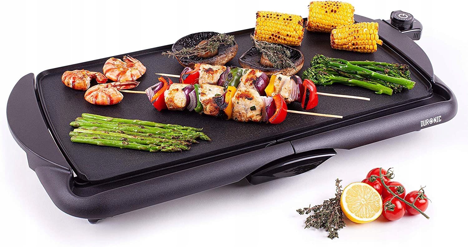 - Duronic GP20 — электрическая сковорода, оснащенная антипригарным покрытием и дополнительным поддоном для сбора вытекающего жира. Семейные барбекю, которые у нас ассоциируются только с летним сезоном, могут длиться круглый год, даже на собственной кухне. Это идеальное решение для всех, кто живет в многоквартирных домах. Устройство мощностью до 2000 Вт позволяет быстро приготовить овощи, рыбу и мясо.