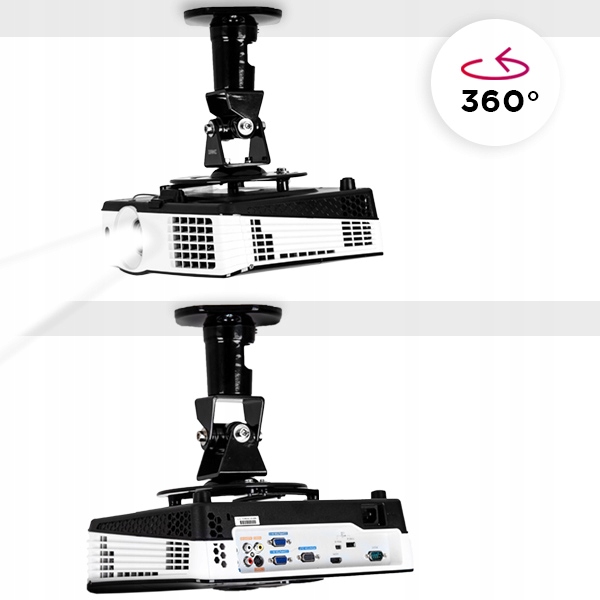 - Потолочный (настенный) держатель с регулируемым углом наклона. Наклоните вертикально и горизонтально на 180° и поверните на 360° вокруг своей оси. После установки расстояние между потолком и проектором составляет всего 218 мм.