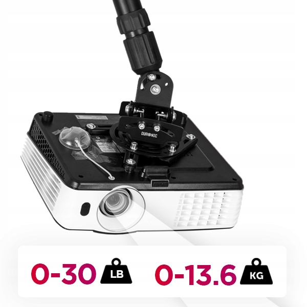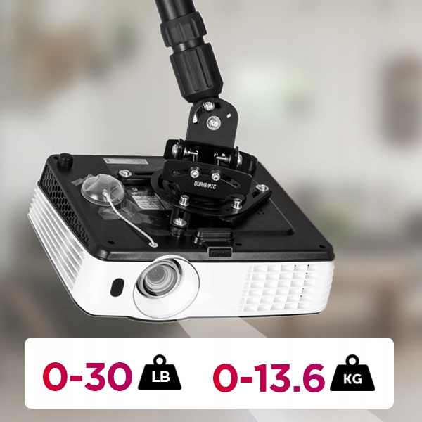 - После установки расстояние между потолком и проектором регулируется от 478 мм до 688 мм. Винт на выдвижном кронштейне позволяет удерживать проектор на необходимой высоте. Держатель изготовлен из качественных и прочных материалов, поэтому мы можем гарантировать, что он выдержит нагрузку до 13,6 кг.