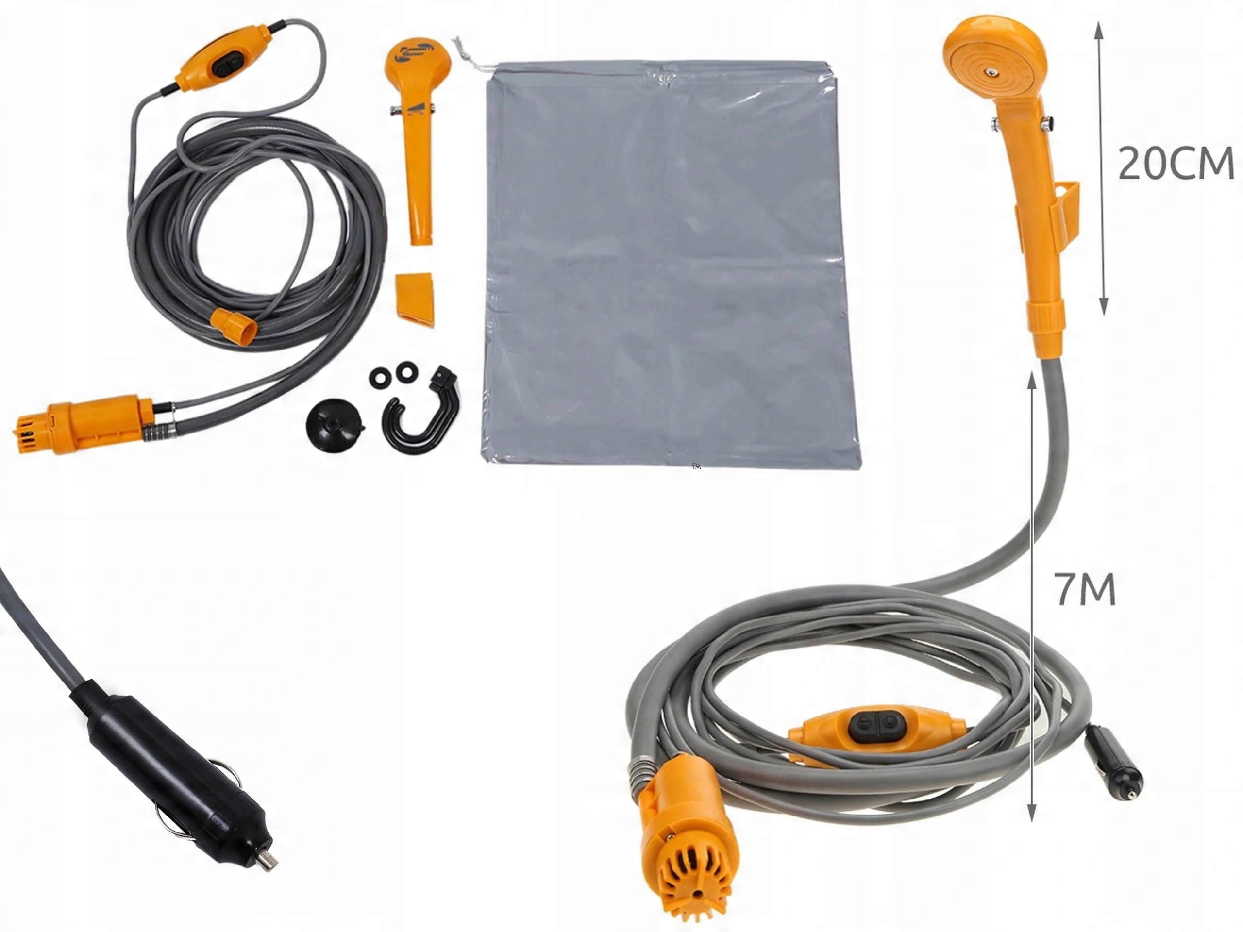 Просто подключите устройство к более легкой розетке 12V , опустите насос в резервуар для воды и насладитесь удобным душем в любом месте. Эффективный насос с потоком 5 л/мин Вы можете быстро и комфортно вымыть.