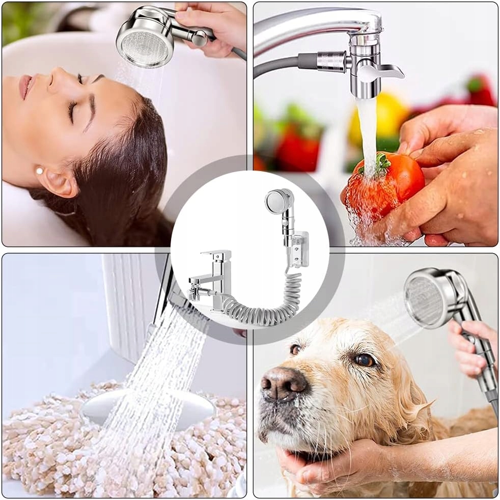 Душевой набор, который можно установить на классический умывальник или кухонный смеситель.