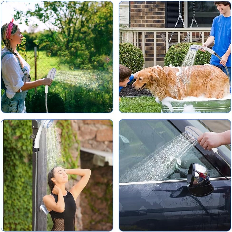 🚿🚿🚿【 всасывающая чашка и ручка с -обработкой】 - телефон для душа может быть сильно прикреплен к любой плоской поверхности, используя прикрепленную всасывающую чашку. Прикрепленный крючок S -формы позволяет вам безопасно повесить его над головой. Подходит для принятия душа внутри и снаружи, плавать с домашними животными, промыть машину, поливать сад, поездок на дороге, лагерь, походы, путешествовать, на пляж и т. Д.