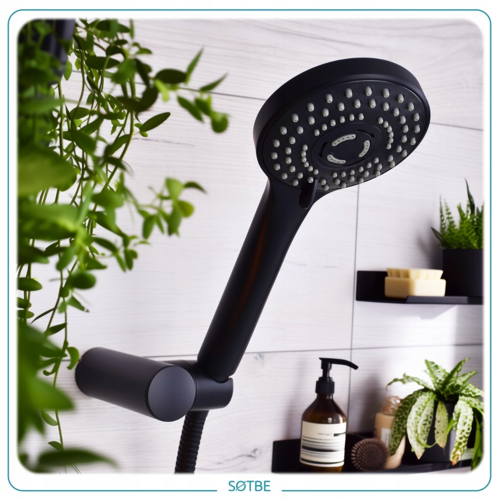 Современный душевой набор 3 в 1 — функциональное и эстетичное решение для любой ванной комнаты. В комплект входят: элегантная душевая насадка с 3 режимами струи, гибкий шланг длиной 150 см и соответствующий настенный держатель. Все это покрыто стильным черным ковриком, который идеально вписывается в современный дизайн интерьера.