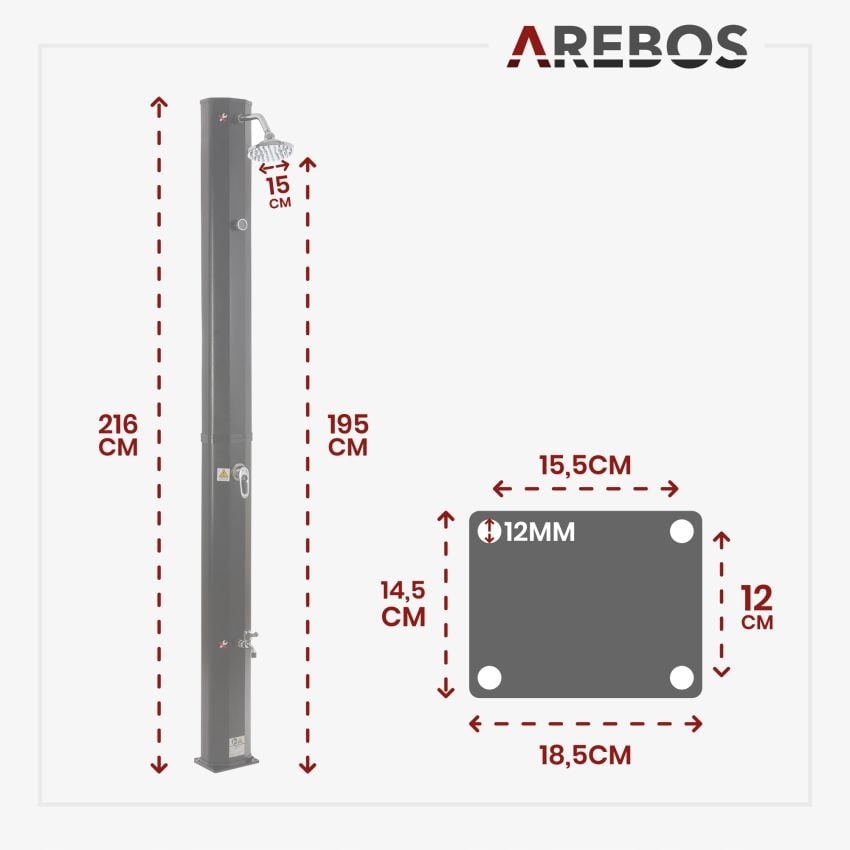 Солнечный садовый душ 35л с термометром AREBOS, черный, 216 см