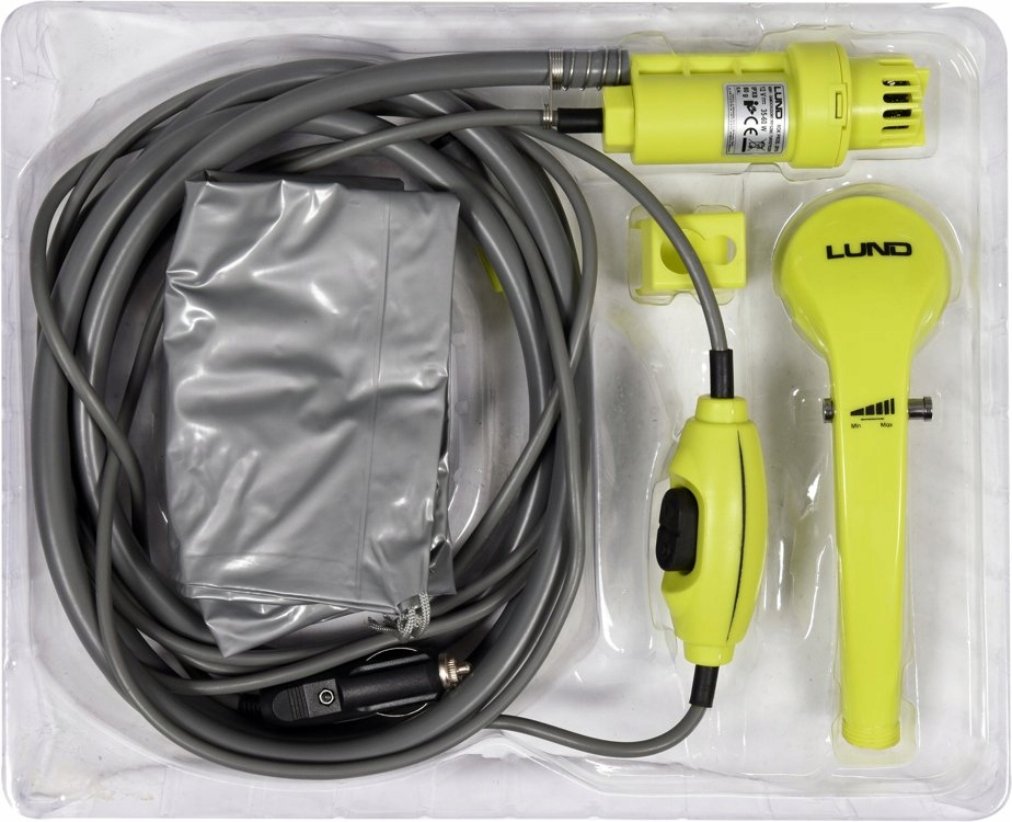 Переносной душ оснащен электрическим насосом. Полезно для кемпинга, биваков и мест без доступа к ванной. Шланг длиной 2 метра и сетевой шнур длиной 4 метра обеспечат большой рабочий диапазон.