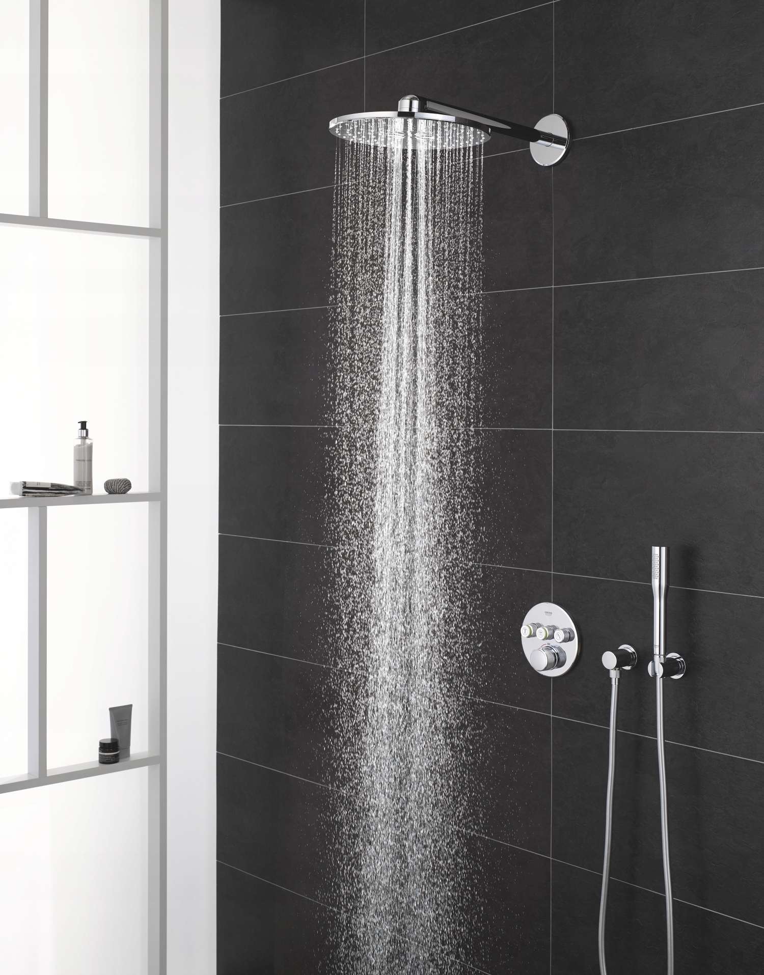 - Простой и быстрый монтаж - для правильной установки тропического душа с кронштейном необходим скрытый элемент 26484000 (оснащен экономной технологией GROHE EcoJoy) или 26483000 (без экономящей Технология GROHE EcoJoy). Оба заказываются отдельно.