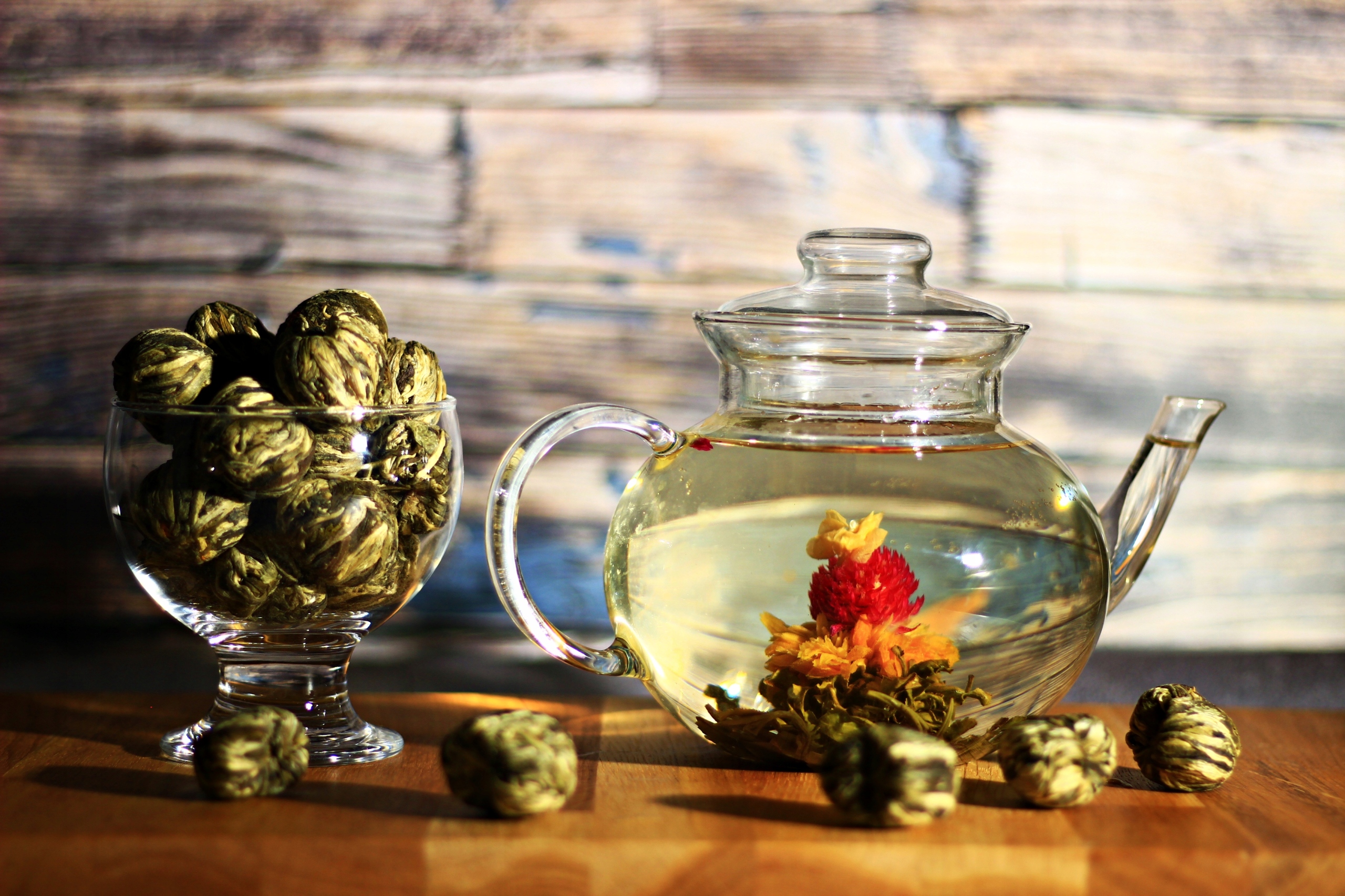 Цветущий чай, скрученный вручную. До заваривания он имеет форму неприметного боба, который при помещении в горячую воду превращается в сферический вечнозеленый цветок, жасмин и бархатцы. Необычные деликатесы могут быть не только кульминацией цветения роскошный ужин или обед с друзьями. Они также хороши в качестве подарка и станут неожиданным сюрпризом. Очень рекомендую!!