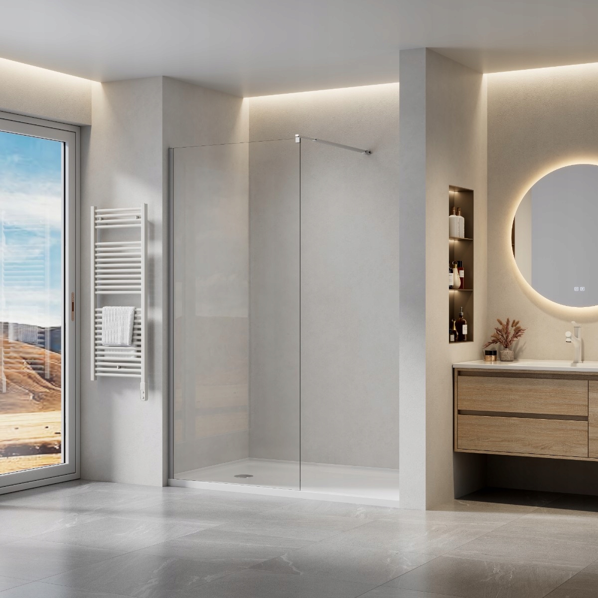 Блестящие душевые стены могут быть установлены прямо на полу или на выделенных душевых лотках. По сравнению со многими конкурентными предложениями, набор включает в себя верхнюю регулируемую и подвижную стабилизирующую ручку с возможностью установления настенных заглушек на стену, что, безусловно, обеспечит еще большую стабильность душевой стены и повлияет на безопасность пользователя. Элегантная форма ручки будет выглядеть красиво как в классической, так и в современных комнатах. Полная техническая спецификация ниже
