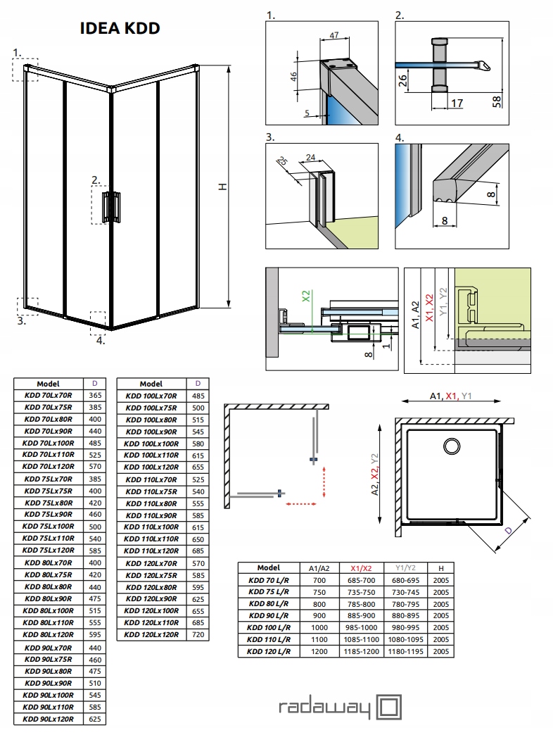 Душевая кабина Idea KDD 80 (левая часть) x 80 (правая часть) x 200,5 см из прозрачного стекла от RADAWAY