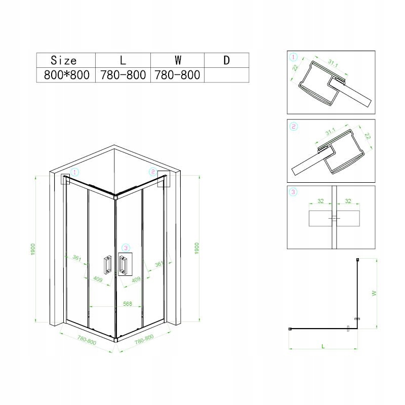 ✅ размер: 800х800х1900 мм