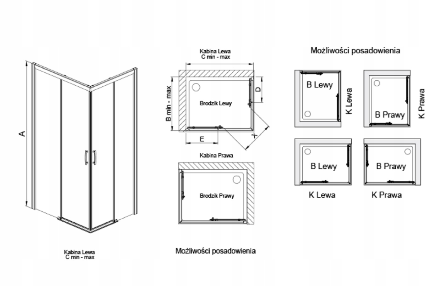 ДУШОВА КАБІНА ПРЯМОКУТНА 80Х90 СМ, ПРАВА