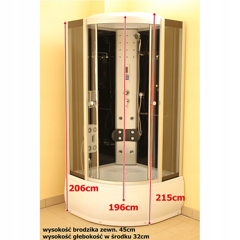 Качественный АБС + санитарный акрил 5мм Качественные форсунки и изливы !!Передняя и задняя часть кабины стеклянные!!