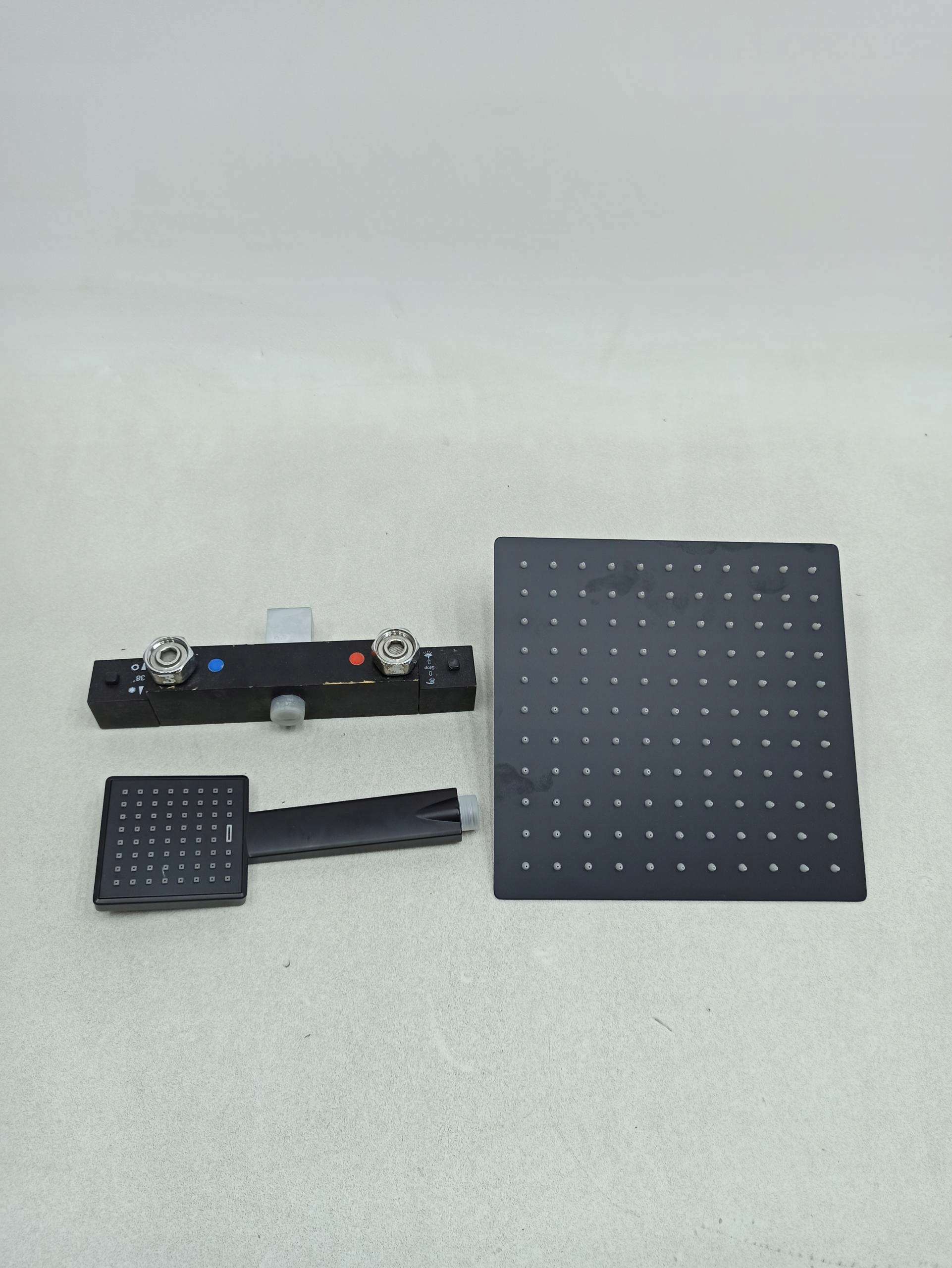 Душевая колонна Auralum, термостат, душевой набор, черный, регулируется по высоте, душевой набор, черный, с тропическим душем