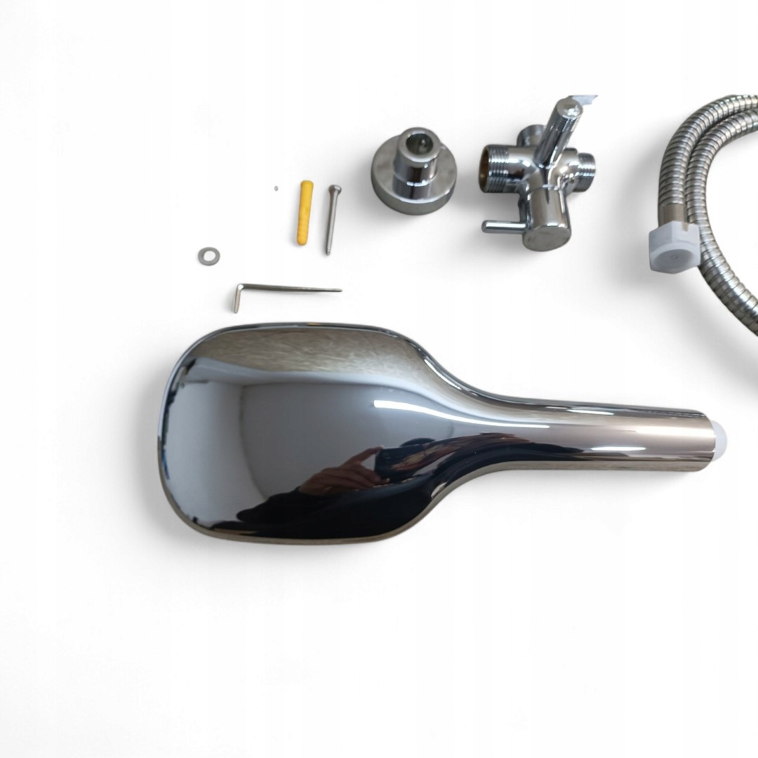 - 【Ручка для душа с 3 видами струи】 Высококачественная большая душевая насадка (10х12 см, эффективность XXL) с современным дизайном с возможностью нажатия кнопки, позволяющей выбирать разные типы струи: дождь, нежный массаж, сильный массаж. Держатель для душа позволяет регулировать высоту и угол насадки душа в соответствии с вашими потребностями. Латунный переключатель позволяет легко переключаться между верхним и ручным душем.