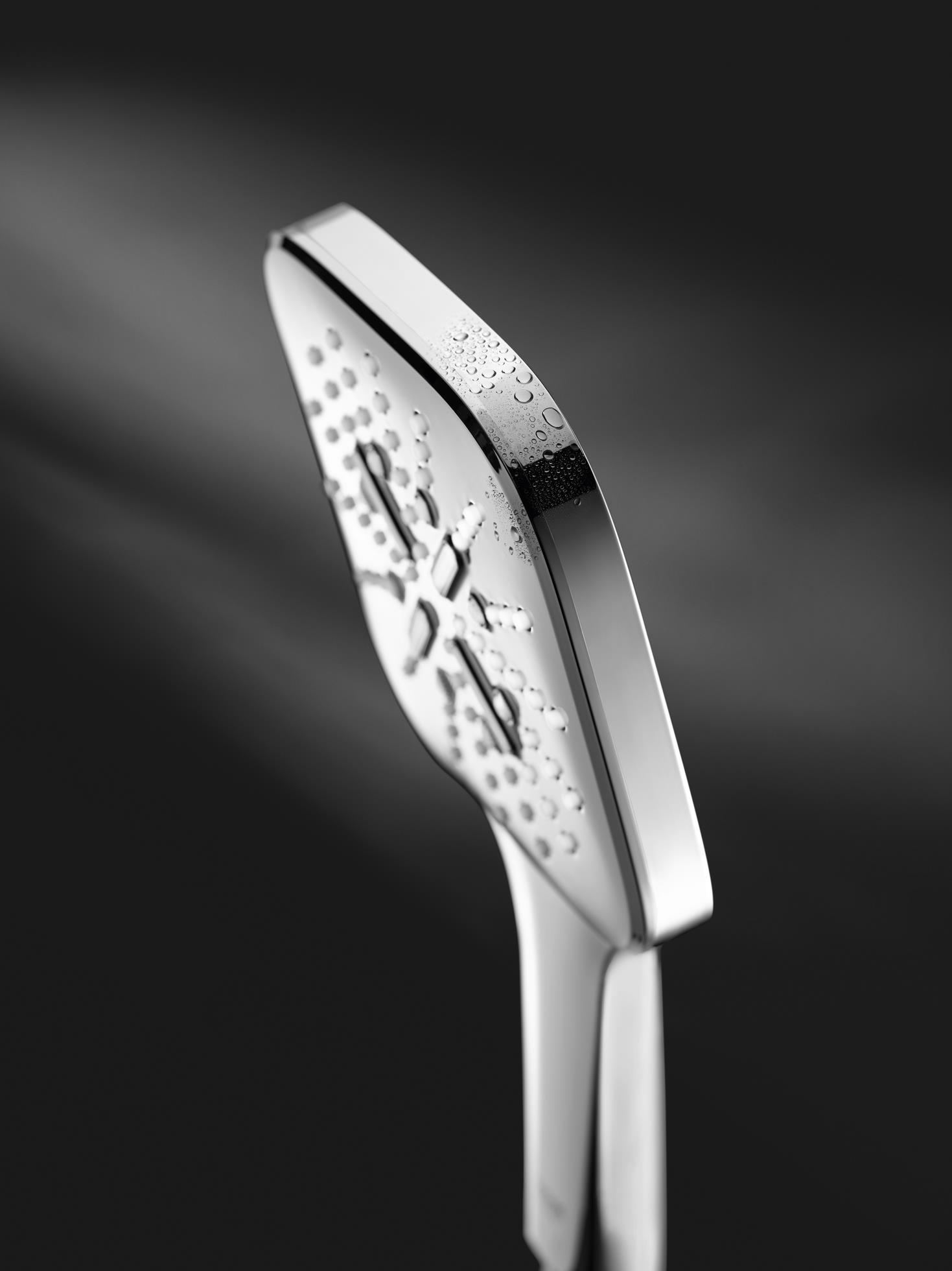 - Grohe SmartTip выбор струи душа нажатием кольца на насадке душа