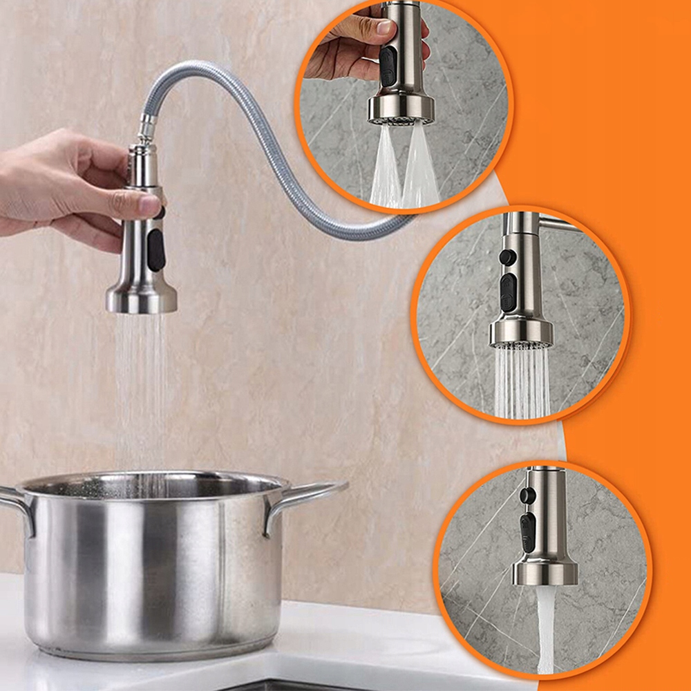 ✅ 3 режима смесителя: Наша душевая насадка для кухонного смесителя поддерживает режимы потока воды, высокого давления и струи. Режим струи высокого давления эффективно очищает стойкие пятна, а режим струи создает эффект «балета», превращая уборку в удовольствие.