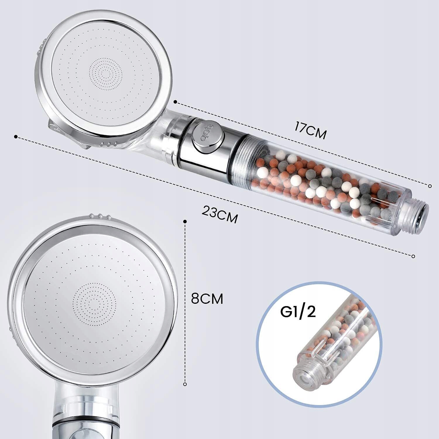 🛁 [Фильтрация душевой насадки] - Натуральные биоактивные камни обеспечивают экологически чистую фильтрацию воды для удаления вредных веществ. Смягчите жесткую воду. Поддерживайте баланс pH воды. Помогает восстановить более здоровую и гладкую кожу, сделать волосы более мягкими и сильными.