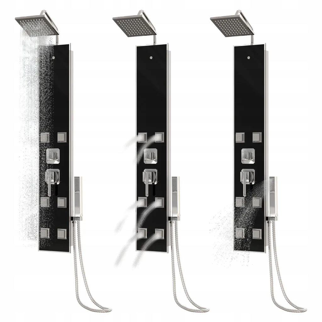 Душевая панель изготовлена из нержавеющей стали и закаленного стекла. Закаленное стекло производится путем термической или химической обработки, что повышает его долговечность и безопасность по сравнению с обычным стеклом. Изделие предлагает три формы душа: тропический душ, водоструйные массажные форсунки и ручной душ. Силиконовые насадки устойчивы к известковому налету.