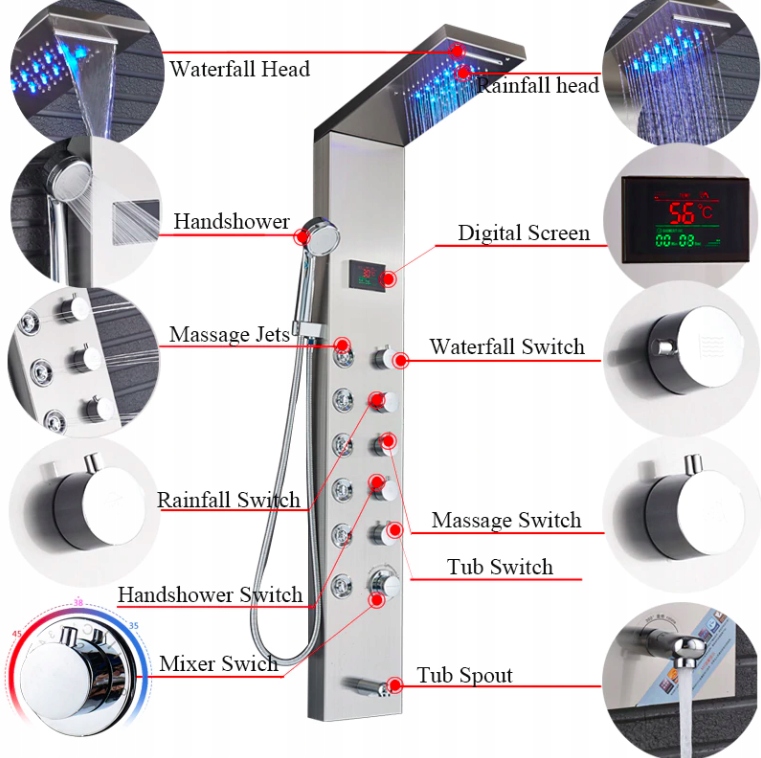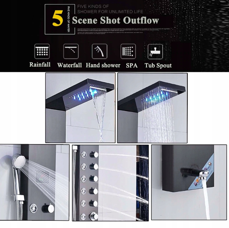 Душевая панель, Тропический душ, водопад, гидромассаж
