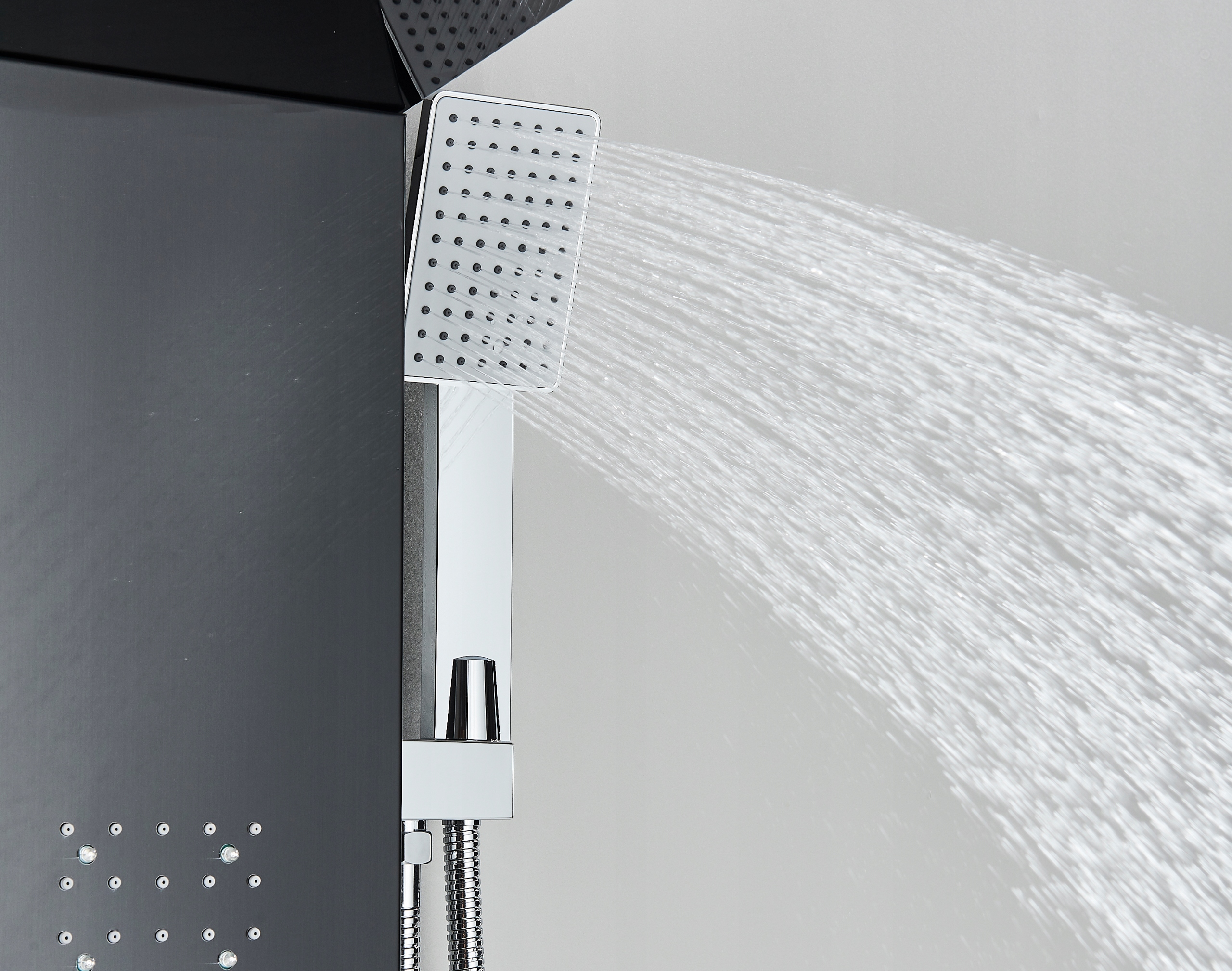 Эксклюзивная, стильная и современная душевая панель с гидромассажем, водопадом, тропическим душем, изливом и светодиодами