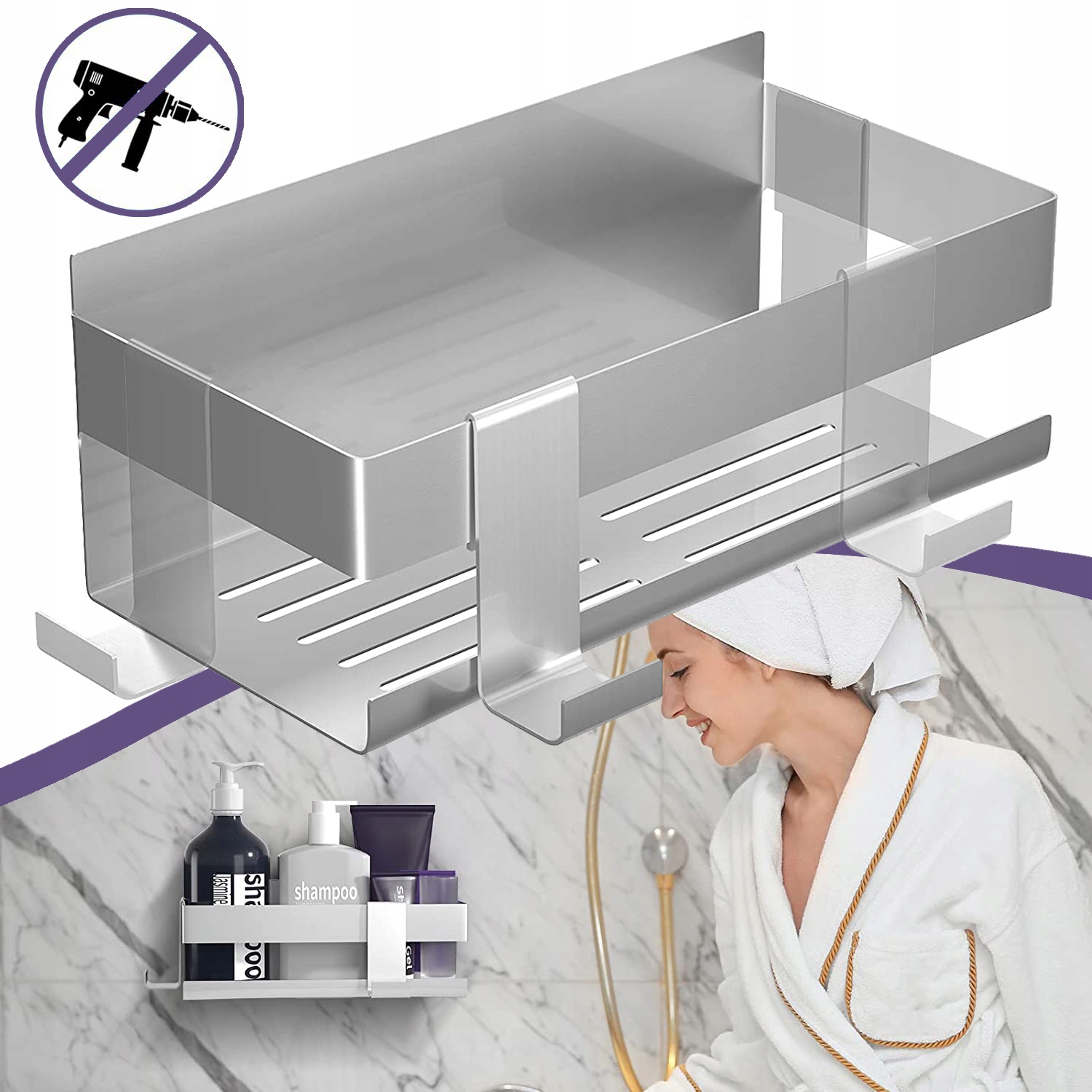 Полка для душа без бурения с сливными канавками в сете с 2 крючками