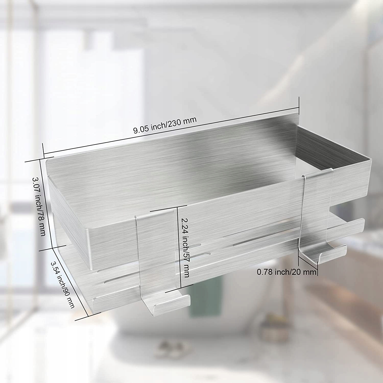 Существует достаточно места для 4-8 шампуней или аксессуаров для ванной комнаты на стойке для душа. Кроме того, вы можете использовать 2 крючка для душа, щетки и т. Д. Благодаря этому душевая стойка более устойчива к ржавчине и остается нагрузкой дольше. Вес 465 G говорит о высокой и плотной обработке нержавеющей стали, поэтому ее можно классифицировать на самом высоком уровне. Сильная 3 -метровая клейкая шайба готова к установке. Соответствующие буровые материалы также доступны в качестве альтернативы