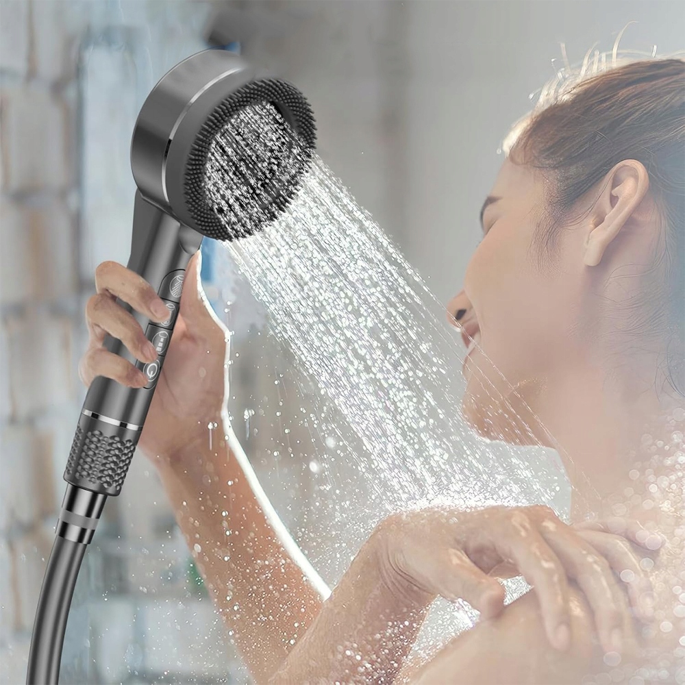 Эта насадка для душа создана для того, чтобы превратить ежедневный душ в небольшой СПА-ритуал. 3 режима струи позволяют регулировать интенсивность воды – нежный туман прекрасно освежает в жаркие дни, режим массажа стимулирует и расслабляет мышцы, а классическая струя обеспечивает быстрое и эффективное мытье. Фильтрация воды сохраняет ее чистоту, удаляя примеси и улучшая ее качество. Мягкая силиконовая массажная щетка идеально подходит для ухода за телом, массажа головы или купания вашего питомца. Благодаря технологии давления вы получаете мощную струю при меньшем расходе воды, что приводит к меньшим расходам.