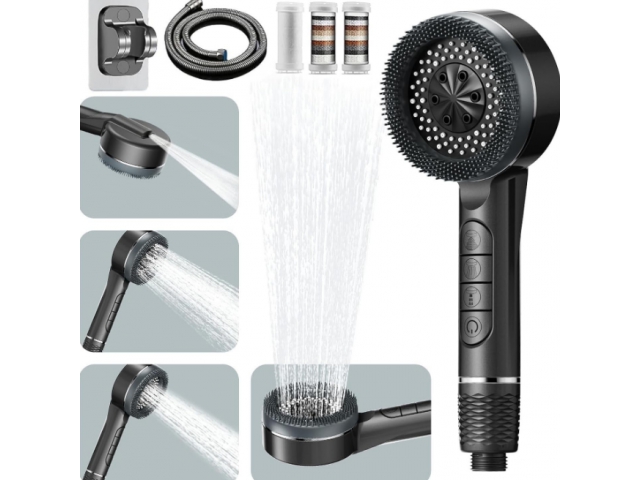 🚿 ✨ Измените повседневный прием ванны с помощью современной душевой насадки 3-в-1 со шлангом и ручкой — инновационного решения, сочетающего в себе фильтрацию воды, функцию массажа и регулируемые режимы струи. Это продукт, который позволит вам не только позаботиться о своей гигиене, но и о здоровье кожи и волос, и при этом сэкономить воду. Благодаря элегантному черному дизайну он идеально впишется в любую ванную комнату, придав ей современный характер. В комплект входит все необходимое для установки – душевая лейка, гибкий шланг длиной 150 см и настенный кронштейн с прочной клейкой лентой. Это комфорт, стиль и функциональность в одном!
