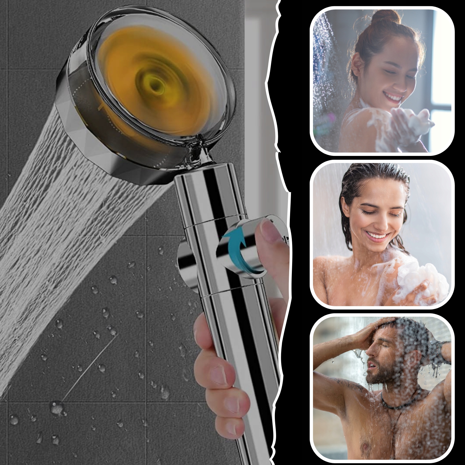 В нашей душевой лейке используется инновационная турбинная технология с вентилятором, которая увеличивает скорость потока воды без необходимости повышать давление в установке. Благодаря этому вы сможете насладиться сильной и равномерной струей воды, обеспечивающей глубокое очищение и расслабляющий массаж.