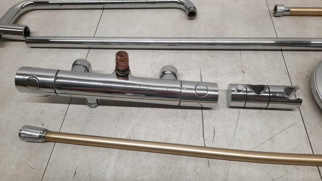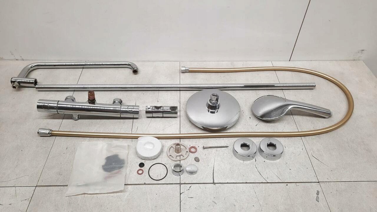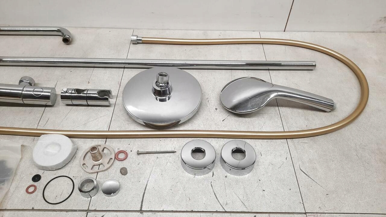 СОСТОЯНИЕ: Комплект немного потерт, душевой шланг весь желтый — б/у.