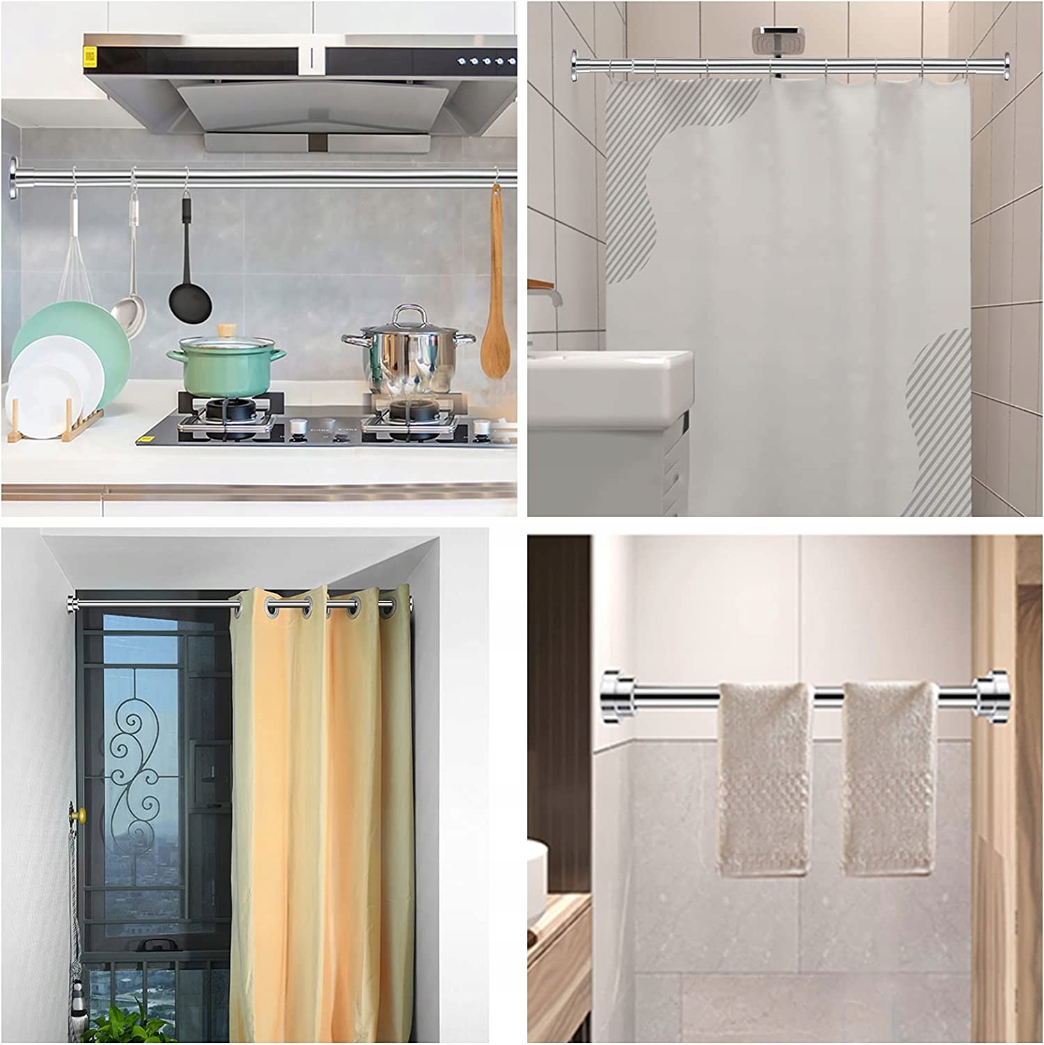✅Универсальный телескопический стержень: Гибкий стержень из нержавеющей стали можно использовать в качестве карниза для душевой занавески, карниза для одежды, карниза для штор, карниза для гардероба в спальне или в качестве карниза для перегородки комнаты.