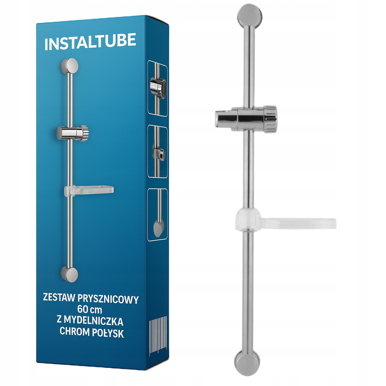 Душевая штанга 60 см с мыльницей InstalTubeглянцевый хром – практичный и долговечный комплект для любой душевой кабины. Душевая штанга оснащена регулируемым держателем для трубки, поэтому вы легко сможете отрегулировать струю воды под свой рост. В комплект входит прозрачная мыльница, идеально подходящая для хранения мыла или геля для душа.