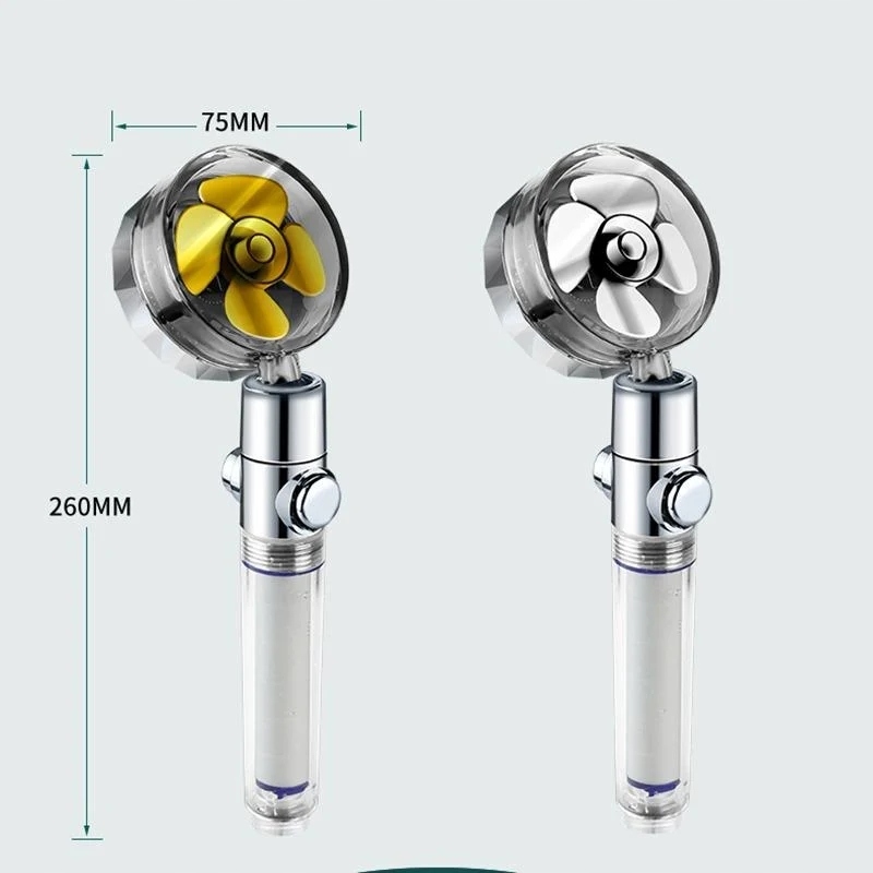 - Конструкция высокого давления. Насадка для душа заставляет поток воды создавать поток под давлением через вращающееся колесо, увеличивая скорость потока воды и тем самым увеличивая давление воды. Применяется при низком давлении воды.
