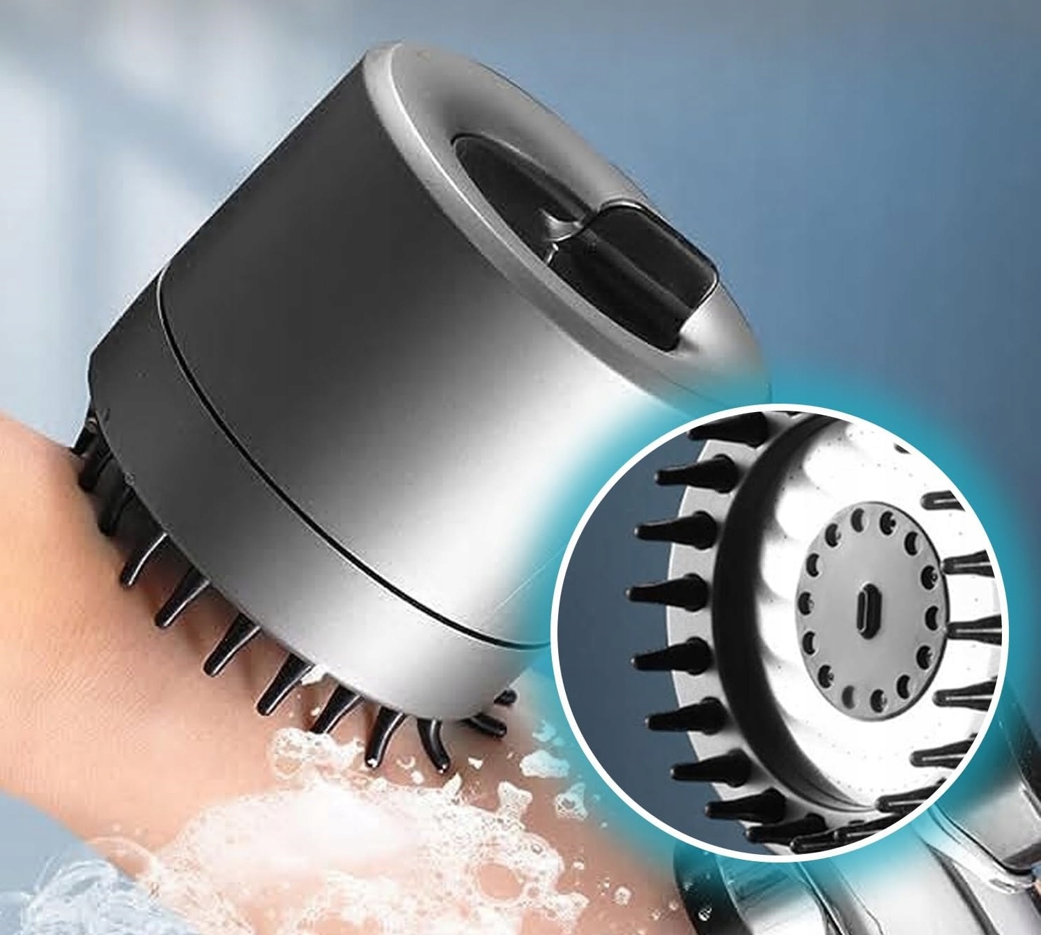 Нежный массаж головы, поддержанный струей воды, – идеальное решение для людей, ищущих освежение, регенерация и уход за кожей и волосами.