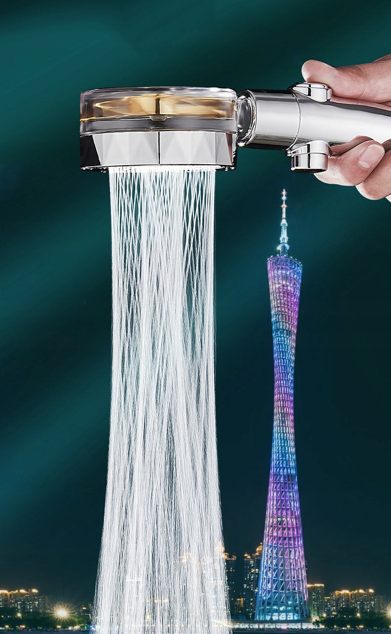 ✅Конструкция высокого давления. Насадка для душа заставляет поток воды создавать поток под давлением через вращающееся колесо, увеличивая скорость потока воды и тем самым увеличивая давление воды. Применяется при низком давлении воды.