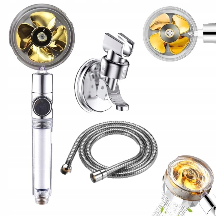 ✅Конструкция высокого давления. Насадка для душа заставляет поток воды создавать поток под давлением через вращающееся колесо, увеличивая скорость потока воды и тем самым увеличивая давление воды. Применяется при низком давлении воды.