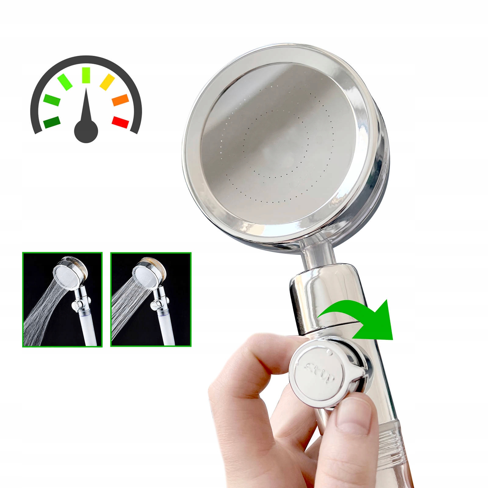 В душевой насадке установлен вентилятор, который аэрирует воду и увеличивает давление потока.