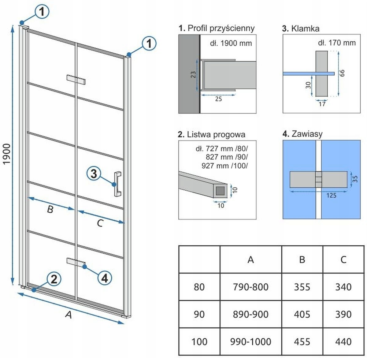 ДУШОВІ ДВЕРІ 100 СМ ЧОРНІ ПРОЗОРІ REA