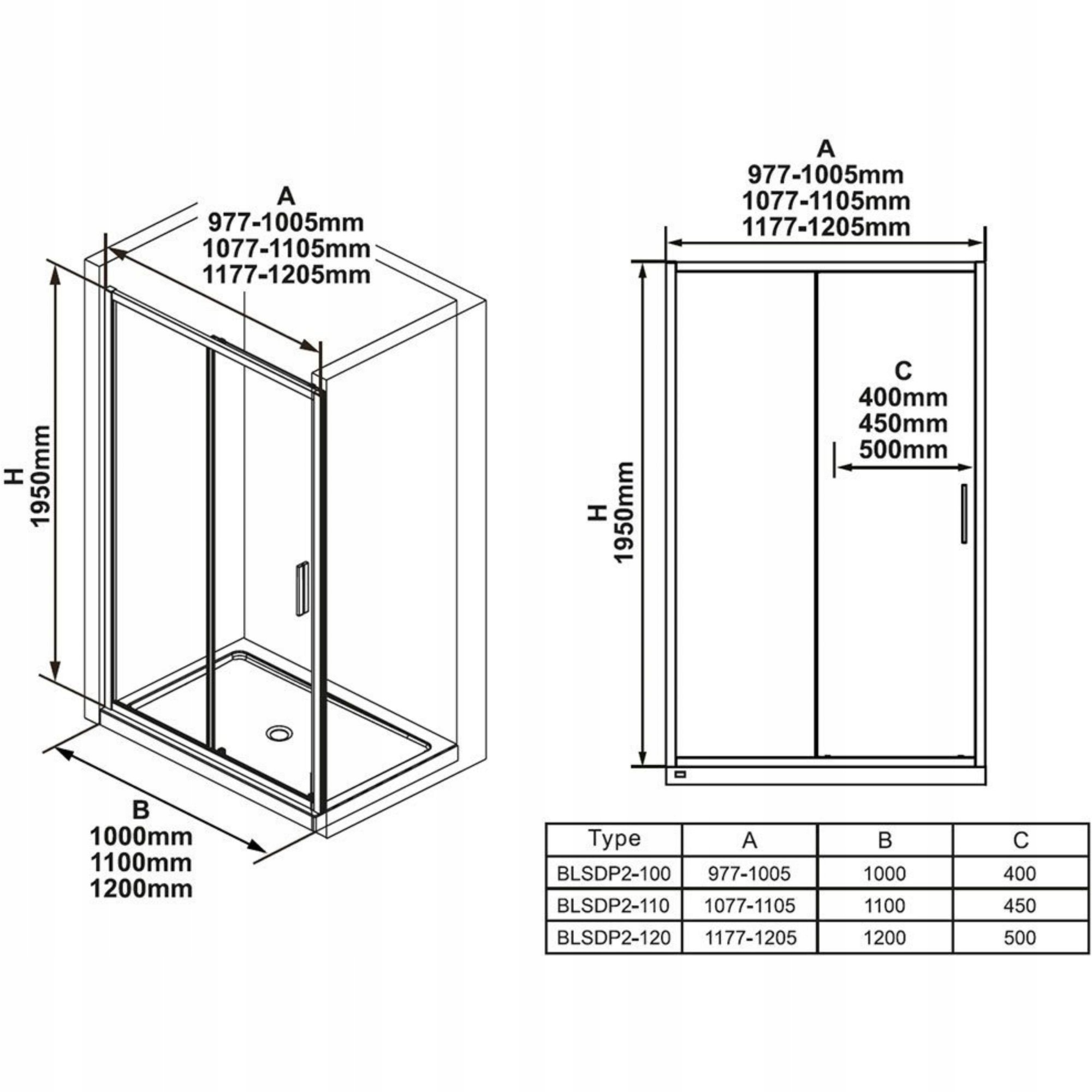 ДУШОВІ ДВЕРІ 120 СМ МАТОВІ ЧОРНІ ПРОЗОРІ СКЛО RAVAK BLIX SLIM