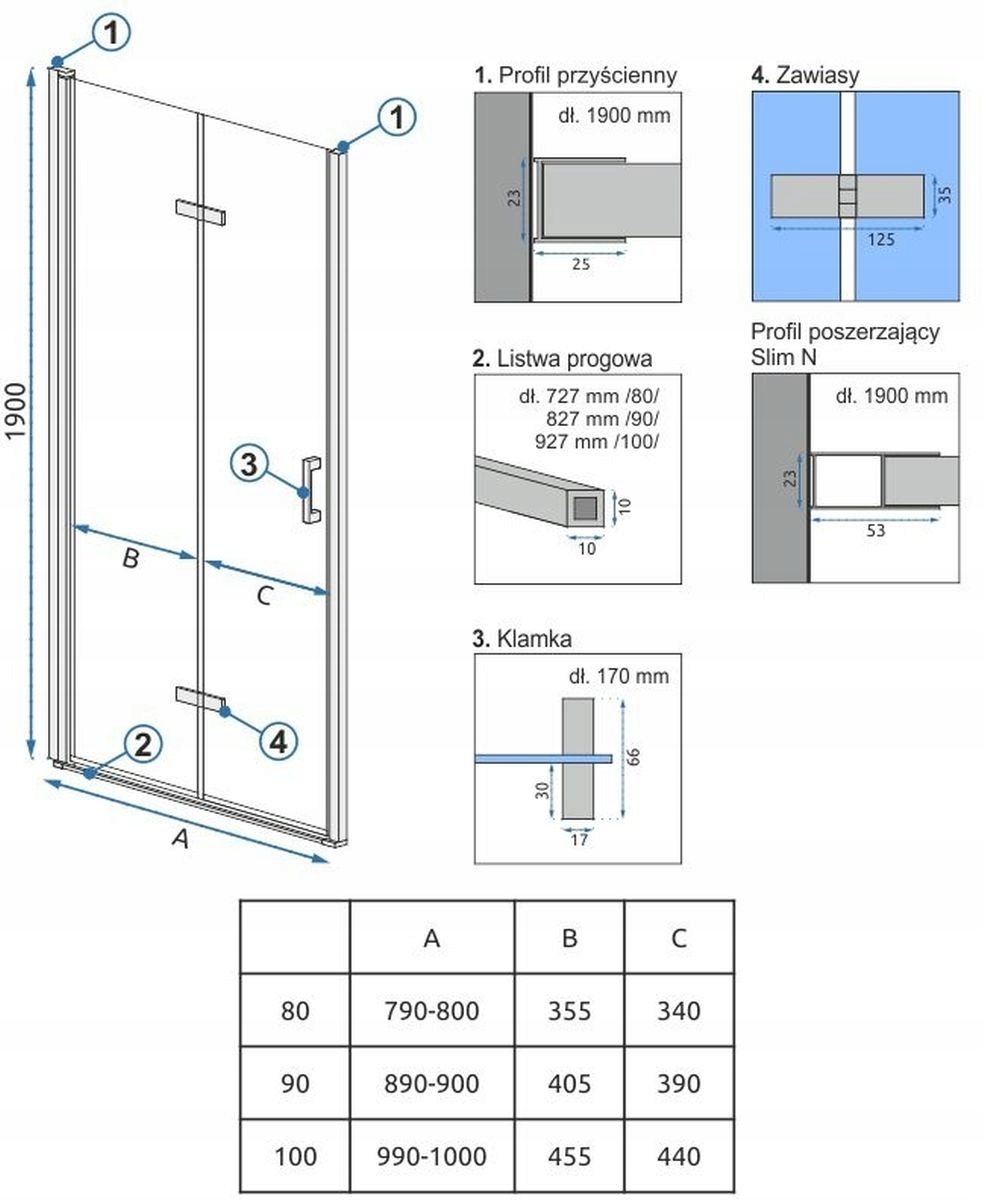ДУШОВІ ДВЕРІ 80 СМ ПРОЗОРІ ХРОМОВІ REA