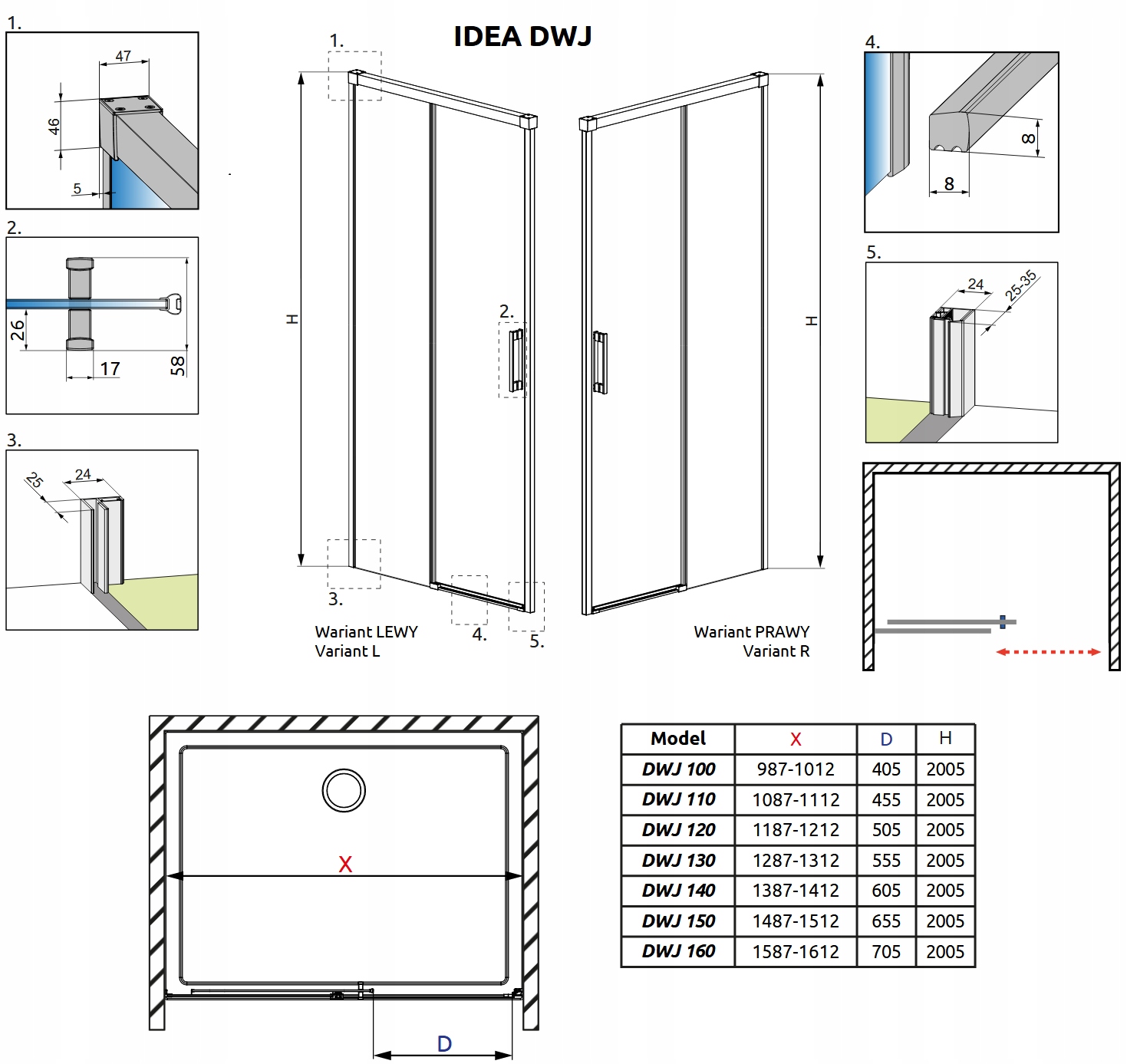 Идея дверей для душа dwj black 140x200.5 radaway