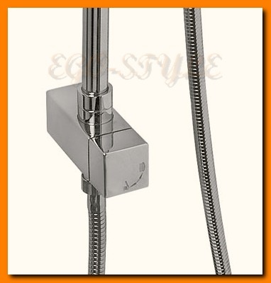 Геометрическая форма душевой лейки и характерный изгиб штанги будут прекрасно смотреться в современных ванных комнатах с элементами аналогичной отделки, например, прямоугольным умывальником или зеркалом.