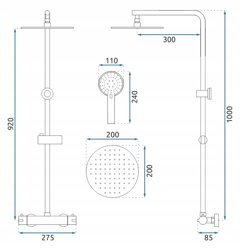 - В комплект входит: Смеситель, душевой шланг с трубкой, тропический душ, держатель трубки.