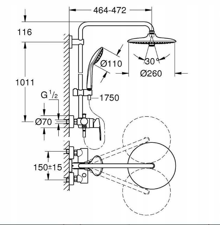 - Угол наклона дождевой головки. регулируется для оптимального комфорта во время купания.